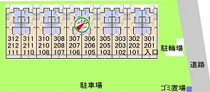 | 3階 | 312 | 311 | 310 | 308 | 307 | 306 | 305 | 303 | 302 | 301 |