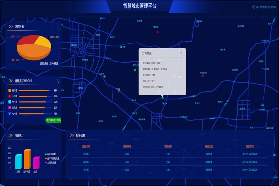 遠程監測運行能耗統計分析:故障率、亮燈率、亮燈時間、能量計量……